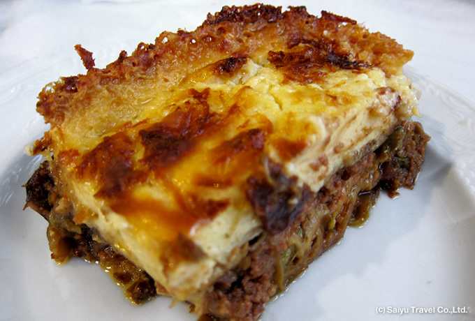 ギリシャ料理の代表格ムサカ(一例)COLUMN ギリシャに残る9つの世界遺産を巡る