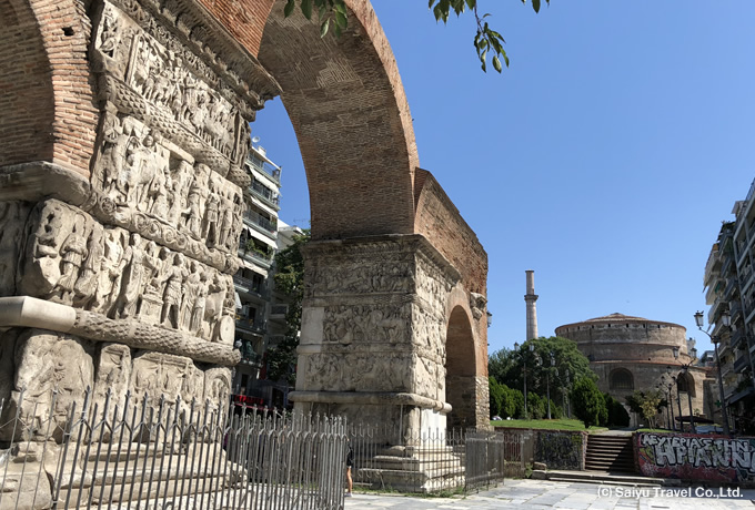 イスタンブール着後、航空機を乗り換えて、ギリシャ第二の都市テッサロニキへ。着後、テッサロニキ市内観光(ガレリウス帝の凱旋門、7世紀のフレスコ画も残るアギオス・ディミトリオス教会、考古学博物館等)。