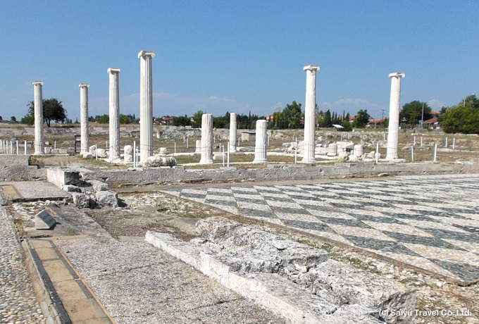 古代マケドニア王国の首都アイガイがあった場所。都は前5世紀末にペラへと遷されますが、アイガイは引き続き王国の中で重要な地位を占めました。この街でフィリッポス2世は護衛の1人によって殺害されたといわれています。1977年の発掘により、4つ見つかった墓のうち1つがフィリッポス2世の墓であると断定され、もう一つがロクサナとの間に生まれたアレキサンダー大王の息子アレキサンダー4世の墓であることも、ほぼ認められています。大墳丘の内部は現在博物館になっており、マケドニア王国の栄華を物語る目を見張るほどの副葬品や、王墓内部のフレスコ画等を見ることができます。