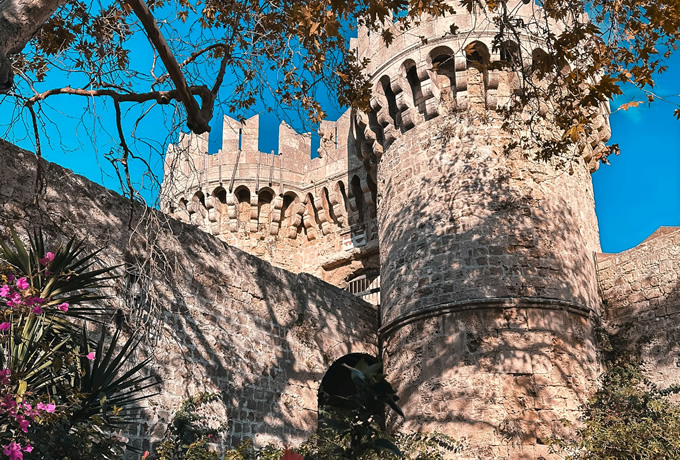 | 8 | ロードス島 | 午後着 | フェリーは、エーゲ海南部を横断し、ドデカニサ諸島に近づきカルパトス島を通過。午後、ロードス島へ到着します。到着後、徒歩にて聖ヨハネ騎士団が築いた要塞都市ロードス旧市街を徒歩にて散策します。騎士団長の居城および行政の中心地として機能したグランド・マスターズ・パレス、オスマン帝国時代のスレイマン・モスク、旧市街のランドマークである時計台などを見学します。