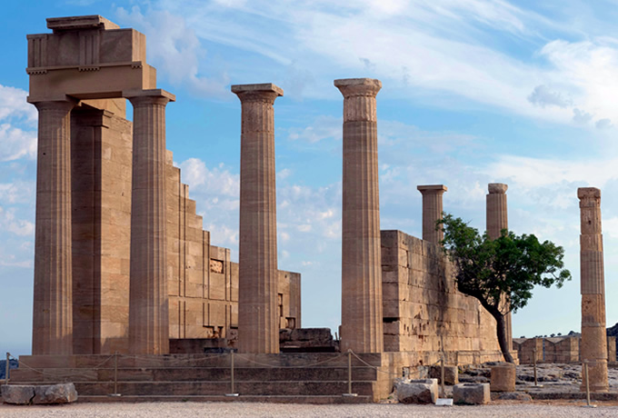 | 9 | ロードス島 | 終日、専用車にてロードス島内のハイライトを巡ります。朝、島の南東部リンドス村を訪れます。岬の頂上にそびえるアクロポリスからは美しい聖パウロ湾が望めるでしょう。ツァンビカ修道院、古代ギリシャの医療の神を祀ったアスクレピオン遺跡を訪れます。