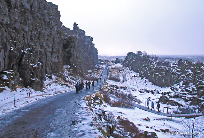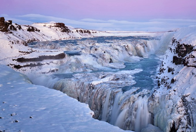 専用車にてゴールデンサークルと呼ばれるみどころを巡ります。数分ごとに熱湯がダイナミックに吹き上げるゲイシール・ストロックルの大間欠泉、黄金の滝と呼ばれる迫力のグトルフォス、世界遺産シンクヴェトリル国立公園にて大地の割れ目ギャウを見学します。 クヴェラゲルジ又はレイキャヴィーク泊 |