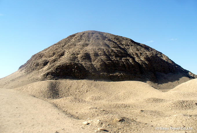 ダハシュールの屈折ピラミッド古代エジプト中王国大2王朝時代のアメンエムハト3世の墓。日干し煉瓦で造られたため、損傷が激しく、現在ではかろうじてピラミッドであることが分かるのみです。