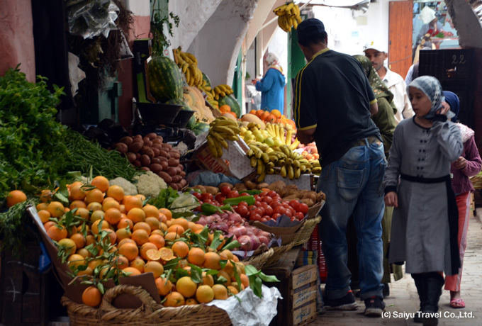 タンジェ郊外のスパルテス岬ギリシャ神話によれば、ポセイドンの息子アンタイオスがこの町を造り、妻ティンギスの名をつけたとされています。フェニキアやカルタゴにより貿易の要所として重用され、モロッコで最も古くアラブ人によって征服されました。メディナには細い迷路のような小路に食料品、香辛料、日用雑貨、皮製品、金属細工などの店が軒を並べるスークや、城壁で囲まれた古いカスバがあります。リフ山脈の麓の町ティトゥアンは、山肌に沿って白い建物が軒を並べる町。スペインに近く、1492年のグラナダ陥落によりイスラム教徒がモロッコへ流出してから、20世紀前半まではスペイン領でした。この街のメディナは内陸モロッコのメディナと違った雰囲気が漂っています。