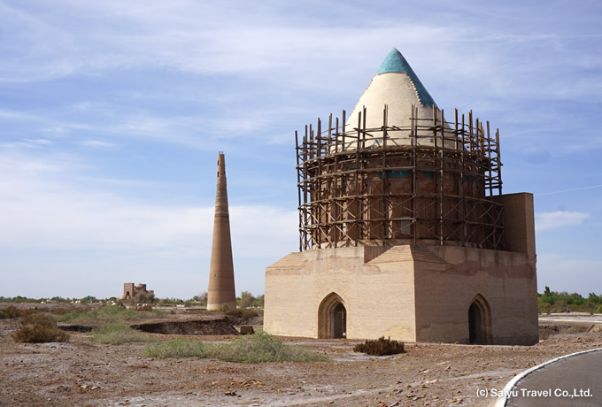 1221年にチンギス・ハーンに滅ぼされるまで、中央アジア一帯の覇権を握っていたホラズム・シャー朝の首都跡。近くを流れるアムダリア川が流れを変えてしまったため、ホラズム王国の都は後世ヒワに遷都されました。クニャ・ウルゲンチには、中央アジアで最も高い「クトゥルグ・チムールのミナレット」を始め、歴代のホラズム・シャー朝の王の廟など、ウズベキスタンとは一味趣の違う建築群が残っています。