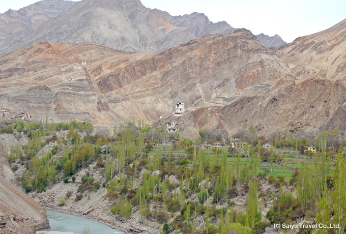 アルチから先、カルツェのチェックポストを過ぎてインダス川沿いの道を北へ向かいます。この道はパキスタンとの国境地帯へと続く軍用道路。この先は入域許可が必要なインナーラインと呼ばれる地域なのです。外国人が訪問できる最奥の場所はダーの集落。アルチから125kmほどの距離になります。