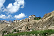 高台に建つ僧院前から望むパドゥムの里パドゥムの街はずれ、小高い丘の上に建つ17世紀創建のゲルク派の僧院。 「おっぱい僧院」の別名を持つこのゴンパの内部にも色鮮やかな壁画が描かれています。ここは常に強烈な風が吹き続けています。